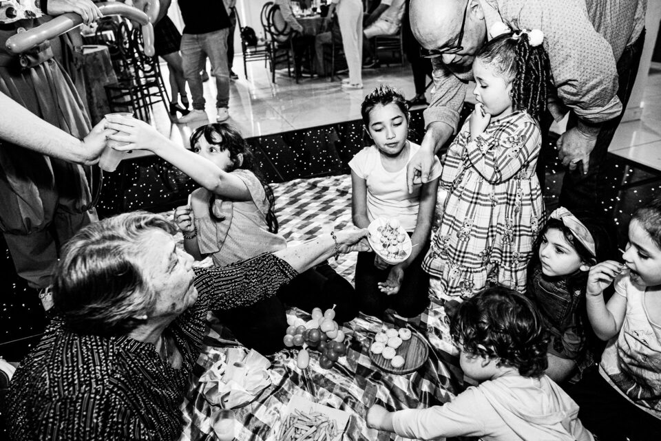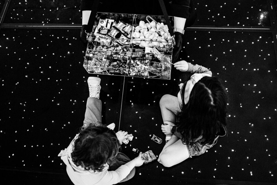 Os dindos, avós e amigos não poderiam faltar nessa celebração única, e o salão estava cheio de risadas e abraços apertados. Para as crianças, foi reservado um cantinho especial no centro do salão, onde puderam desfrutar de um lanche delicioso, com direito a pipoca, algodão doce e muitas guloseimas! 🍭🍿