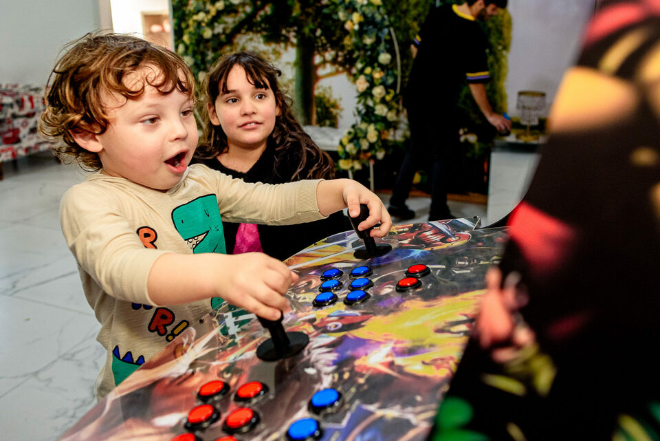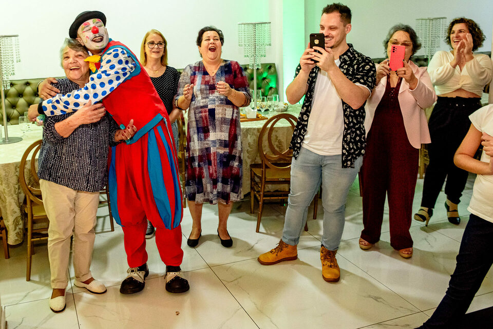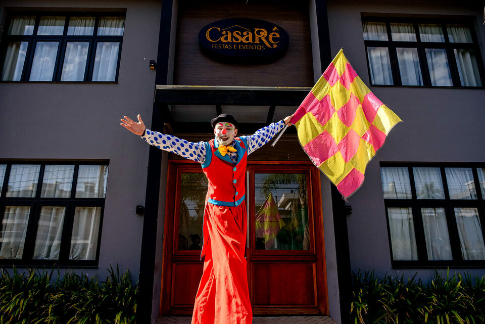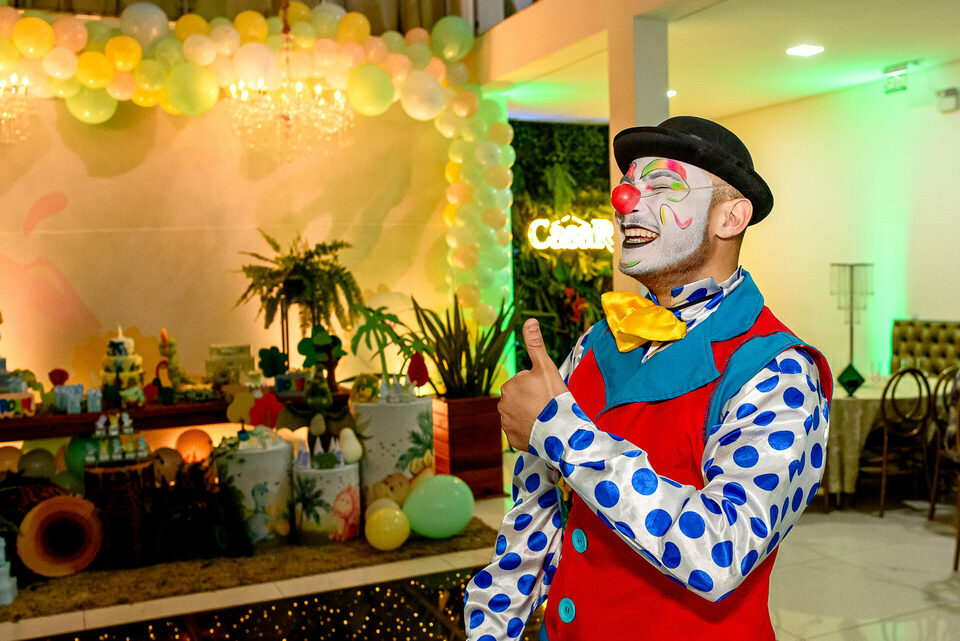 A diversão estava garantida desde a entrada, com um palhaço de pernas de pau dando as boas-vindas e interagindo com todos. No meio da festa, brincadeiras com balões trouxeram ainda mais alegria, proporcionando momentos de muita risada e descontração. 🤹♂️🎈
