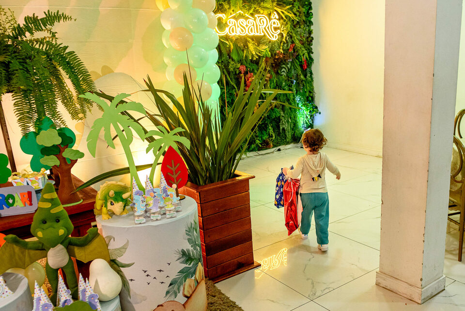 A festa estava repleta de emoção e diversão. A Casa Rê se transformou em um verdadeiro parque pré-histórico, com dinossauros por todos os lados, trazendo à vida a imaginação e curiosidade do pequeno Lorenzo. 🦕🌿