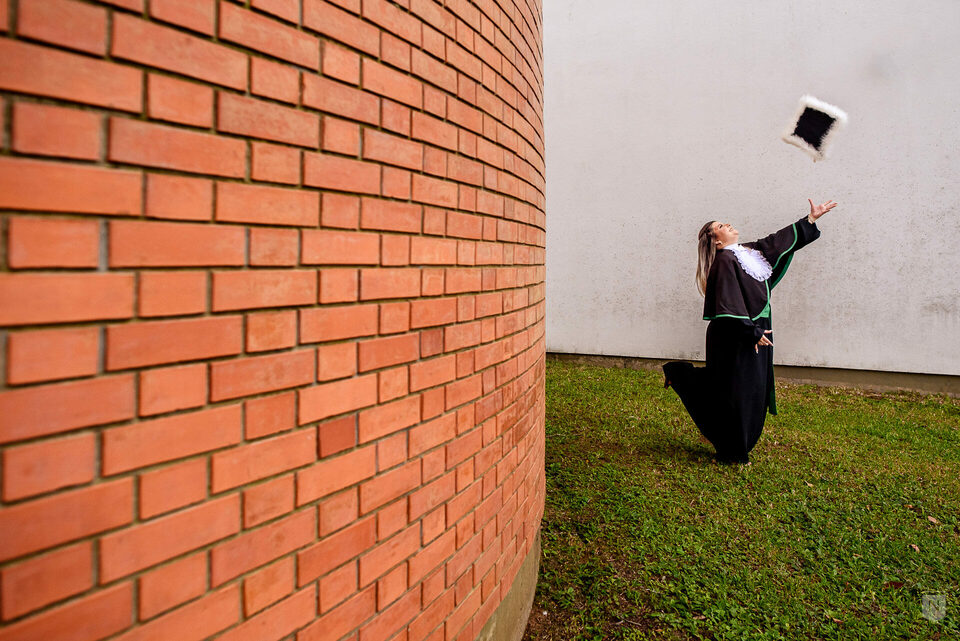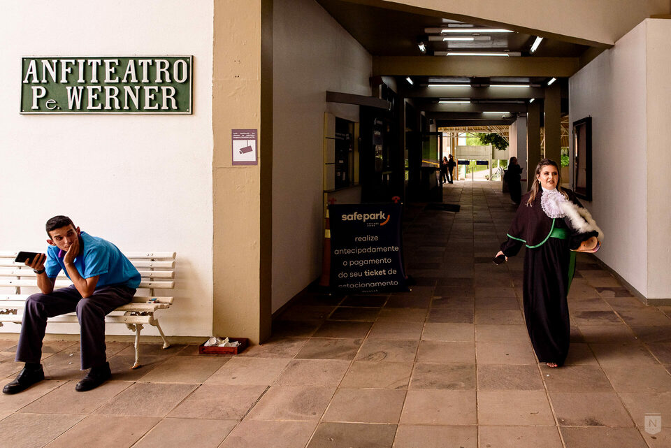 Quando um sonho está prestes a se realizar, temos um misto de sentimentos. Uma formatura marca o fim de um ciclo, e o começo de uma nova jornada em busca de outra metas, outras vivências. Acompanhei a trajetória da Lari desde cedo. Nos encontramos em turmas no ensino médio e, hoje, fotografei a formatura dela. A vida é mais que especial naquilo que nos propomos a fazer de coração, e acaba promovendo tais encontros e reencontros. Contar histórias vai muito além de somente estar presente em um dia especial, e registrar isso. Requer sensibilidade, amabilidade, requer se colocar próximo para sentir o que o outro sente, e a Lari sentiu muito! A solenidade foi linda, com uma dose de emoções, pois o professor que foi seu mentor durante o curso, também estava se despedindo da universidade. A recepção, carregada de sentimentos - houveram perdas significativas e isso traz, sim, momentos de homenagens, choro e emoções. A festa, por outro lado, foi só alegria, até as 5h da manhã, onde a bateria do carro já não ligava nem para dar a partida para ela ir embora.