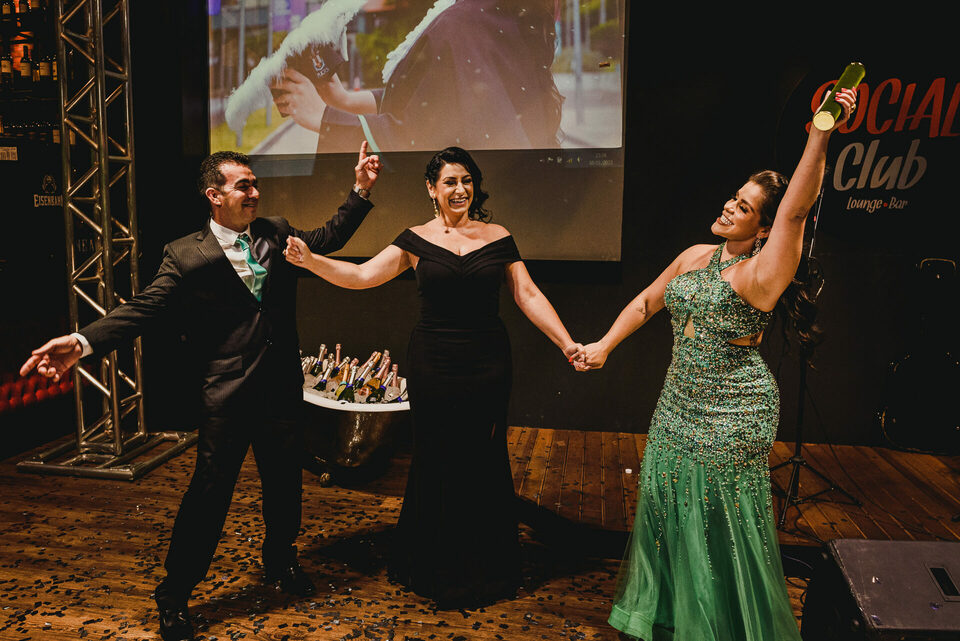 Batalhadora, obstinada e, como todos a sua volta, festeira. O dia se iniciou no making of da My, na Refúgio, aqui em Guaíba. Momento de total alegria e de brindar. Em seguida partimos para a universidade da PUC/RS, onde tivemos um momento para as fotos e logo a colação. Ali tivemos lágrimas rolando e felicidade, muita felicidade. Depois, fomos para a "casa" da família da Mylena, o Social Club. E naquele momento, rodeada de todos que ela gosta, aquela alegria se multiplicou e vieram as lágrimas, em um momento de homenagem aos seus heróis, seus pais. Pois bem, passada toda a emoção daquele momento, chegou a hora de curtir.