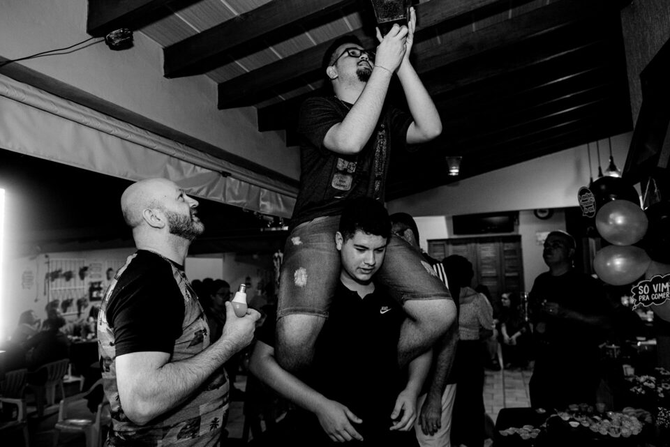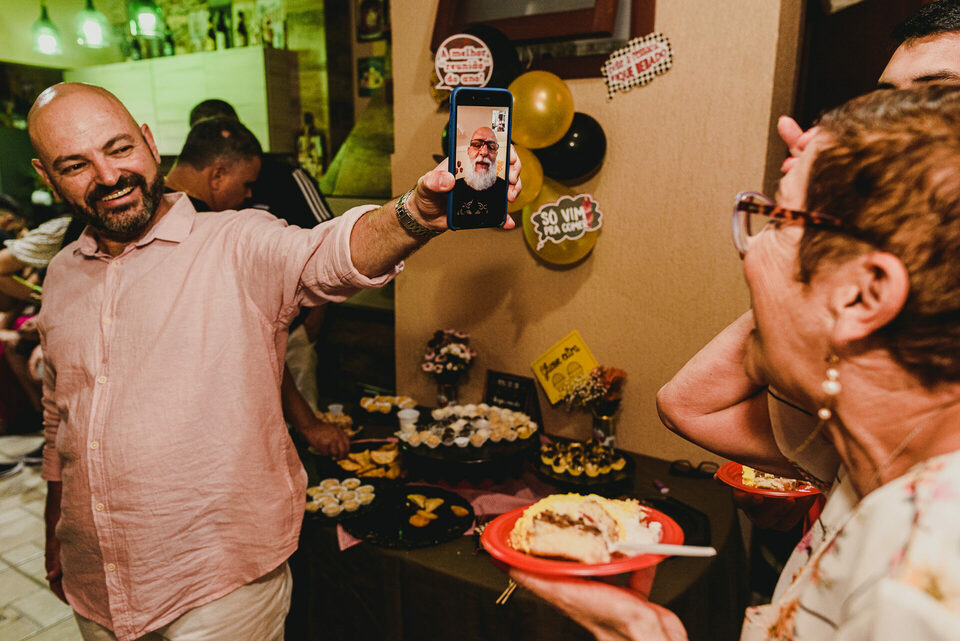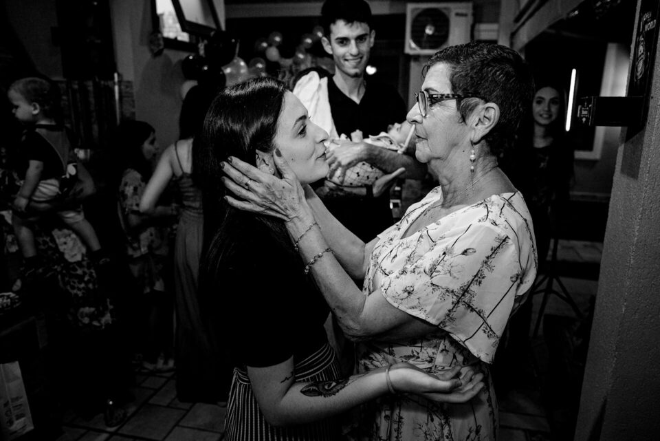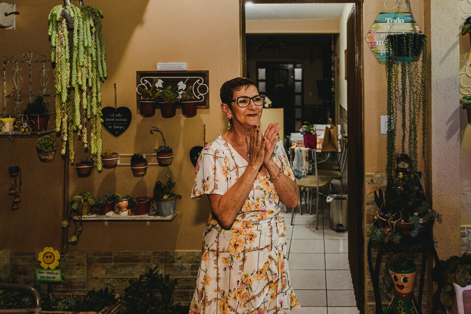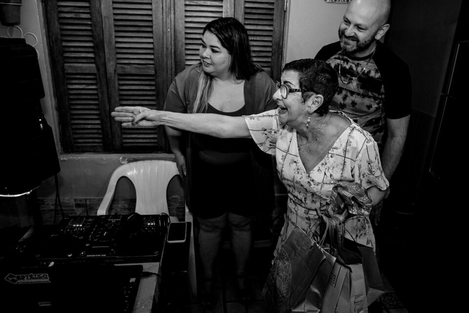 Exatamente. A vontade de todos seria, inevitavelmente, o maior presente de todos: fazer ela sorrir em reciprocidade à todos os sorrisos já proporcionados. Abraçá-la e agradecer pela sua vida. E assim foi. Só que de uma forma que ela não esperava. O primeiro contato comigo foi da própria Nelci, para que eu estivesse fotografando o aniversário dela, que ocorreria num bar local com as pessoas que ela gosta. Aceitei de pronto. Em seguida, a Joice (filha) e a Cleo (nora, esposa do Tarcísio (filho)), entraram em contato comigo para contar o que estavam planejando. Ao invés da Nelci ir para o bar que ela tinha planejado, daríamos um jeito de levá-la para a casa da Cleo e do Tarcísio, onde estariam todos à espera da Nelci. Topei (vocês sabem que adoro isso).