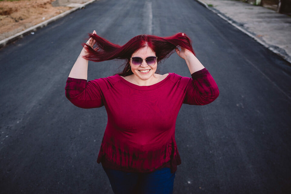 Ela ainda não havia fotografado e também disse que era um pouquinho tímida. Nós a tranquilizamos, auxiliamos e chegou o dia de fotografarmos. Aqui entra uma grande parte do ensaio fotográfico feminino: fazer com que você se veja com outros olhos. Nós estamos acostumados a nos vermos somente no espelho e, por melhor que você seja com a sua autoestima, já está acostumada aquele ângulo. Quando você dedica uma tarde a experiência de ser fotografada, de ser a pessoa que tem toda a atenção, do fotógrafo, do ambiente, da luz e de tudo ali presente... Acaba sendo uma experiência energética, de você pra você.