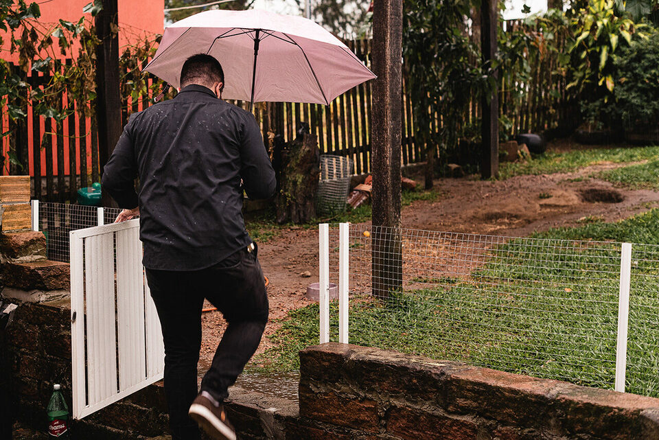 No nosso Pré-Wedding (que você confere AQUI), tivemos uma experiência incível, onde fomos abençoados com um dia lindo e a participação especial do Trovão! Ali já vimos que no dia do casamento seria de igual forma: INCRÍVEL. Dito e feito. No dia do casamento tivemos MUITAS emoções, onde iniciamos o making of em casa, com a Evelyn e mãe dela ficando prontas pra esse dia lindo. Tivemos chuva, imprevistos e muito amor! Meu irmão e parceiro, o Iure, foi o nosso segundo fotógrafo nesse dia, e se encarregou de fazer o making of do nosso Noivo, o Alexandre. Onde tivemos muitas emoções também! A ligação e conexão dele com sua família possibilitou registros incríveis! A partir de então, o Alexandre já estava nervoso para a chegada da Evelyn, e ela, mais ainda! Ainda com chuva, chegamos e dali pra frente a emoção tomou conta.