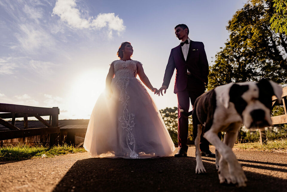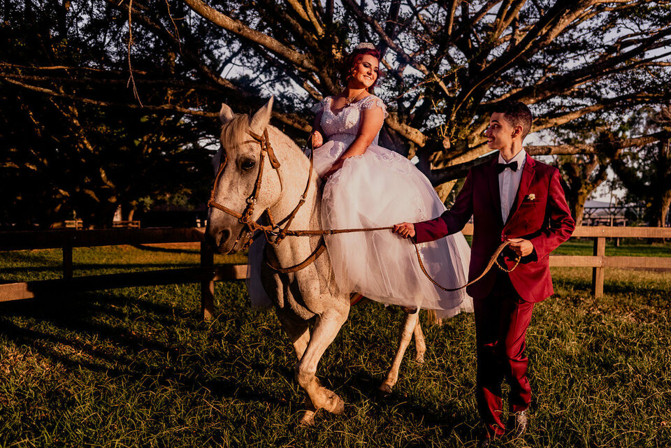 Esse foi o primeiro ensaio pré-wedding realizado no ano de 2021, e o primeiro com um vestido de noiva, realmente. É uma vibe incrível que remete aos Elopement Wedding's. Ou seja, é pura energia! Fiquei feliz demais com a decisão dos meus noivos. O Alexandre também não poupou estilo e escolheu seu smoking bordô para que pudéssemos fotografar. No final, como sempre recomendo, tivemos nosso segundo look para que variássemos o contraste de cores das fotos. E ficou INCRÍVEL! Realizamos o ensaio no Sindicato Rural de Guaíba, onde tivemos também a surpresa do Trovão! Nosso grande amigo que esteve nos acompanhando em uma parte do ensaio! Curiosos? Vem conferir quem foi essa figura emblemática para o nosso ensaio!