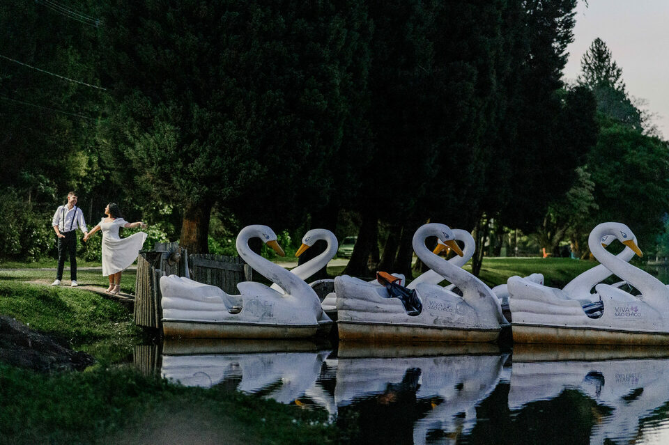 Com trilhas de difícil acesso, as cachoeiras do parque são deslumbrantes, mas não tanto quanto o amor dos nossos noivos. Donos de uma sintonia, química e parceria incríveis, a Dai e o Maicon aproveitaram o dia como se não houvesse amanhã. Após visitarmos as cachoeiras do Remanso e a Escondida, nos dirigimos ao Lago São Bernardo, maior ponto turístico da cidade para finalizarmos nosso ensaio com fotos incríveis ao por do sol. Foi lindo!