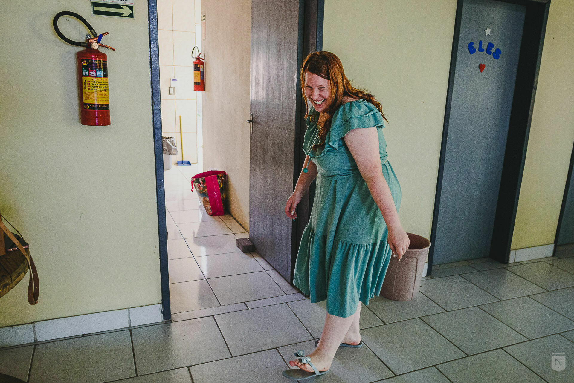 Um fato curioso, foi que as meninas da floricultura me pediram para deixar o buquê em agua gelada, manter ele geladinho... eu fiz o que? Coloquei ele em uma garrafinha com agua na geladeira, acredito que essa foi uma das partes engraçadas, fora a minha rasteirinha que arrebentou e eu fiquei andando arrastando ela de um lado ao outro para não ficar de pé no chão – certamente terei fotos desse evento - nesse momento onde estávamos todas ali, minha mãe, minha sogra, minhas madrinhas, foi a hora que tentei respirar fundo e me manter calma. Ali tive um momento de acolhimento e sem nenhuma dúvida foi muito importante estar com todas elas.