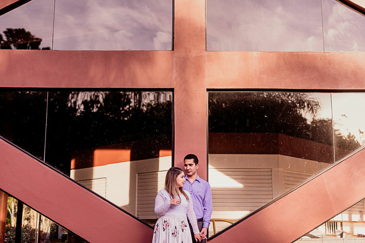 A Camila e o Pedro optaram por roupas de cores sólidas para terem mais destaque nas fotos