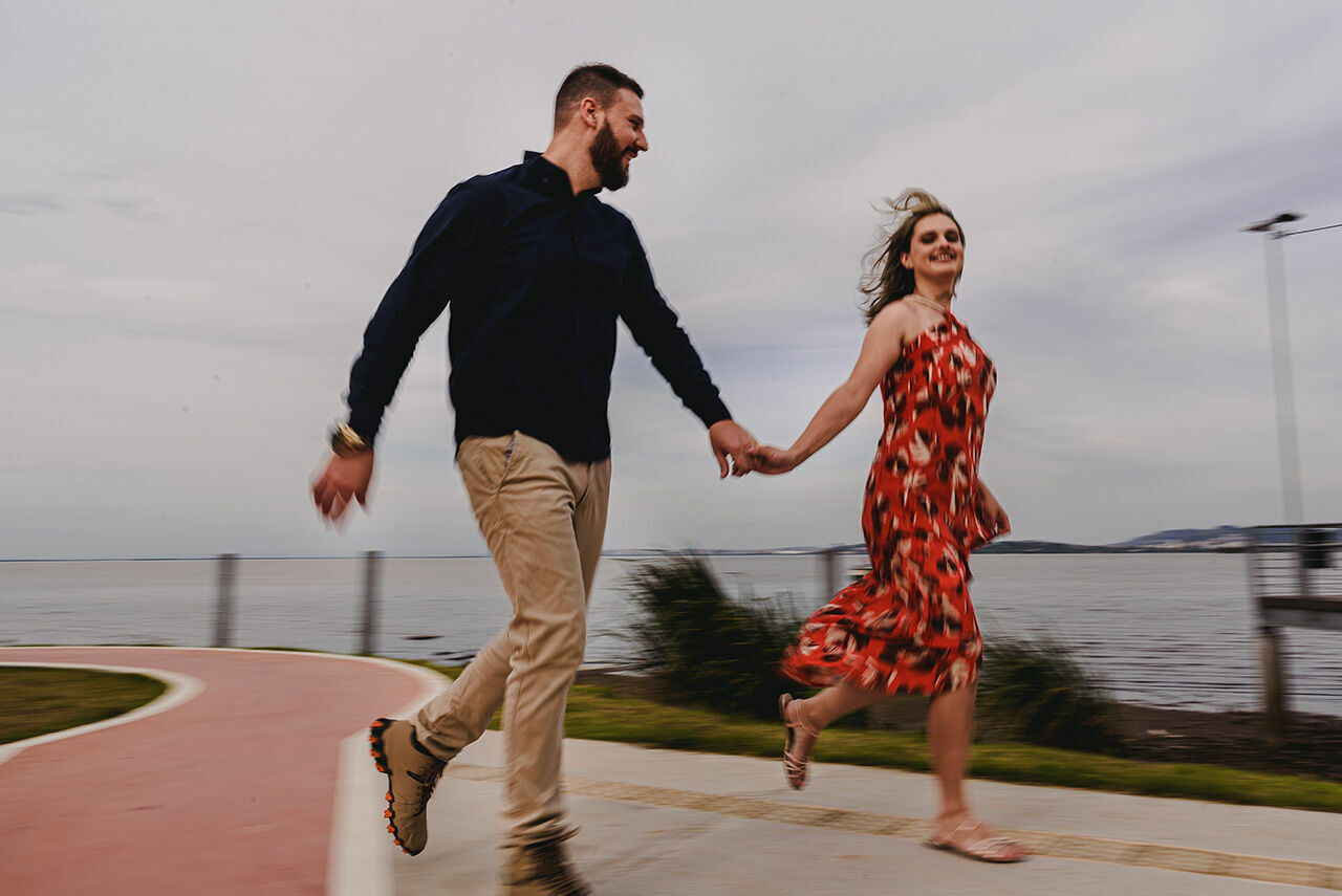 Por exemplo, a noiva vai de vestido longo rendado enquanto o noivo usa regata e boné! Ambos são estilos legais, mas que ficam pouco desarranjando quando juntos em uma sessão de fotos.